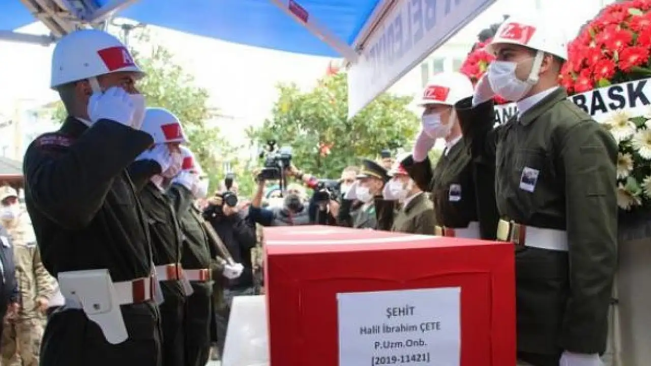 Pençe Yıldırım Harekatı bölgesinde şehit olan Piyade Uzman Çavuş Halil İbrahim Çete'nin cenazesi, memleketi Hatay'da toprağa verildi.