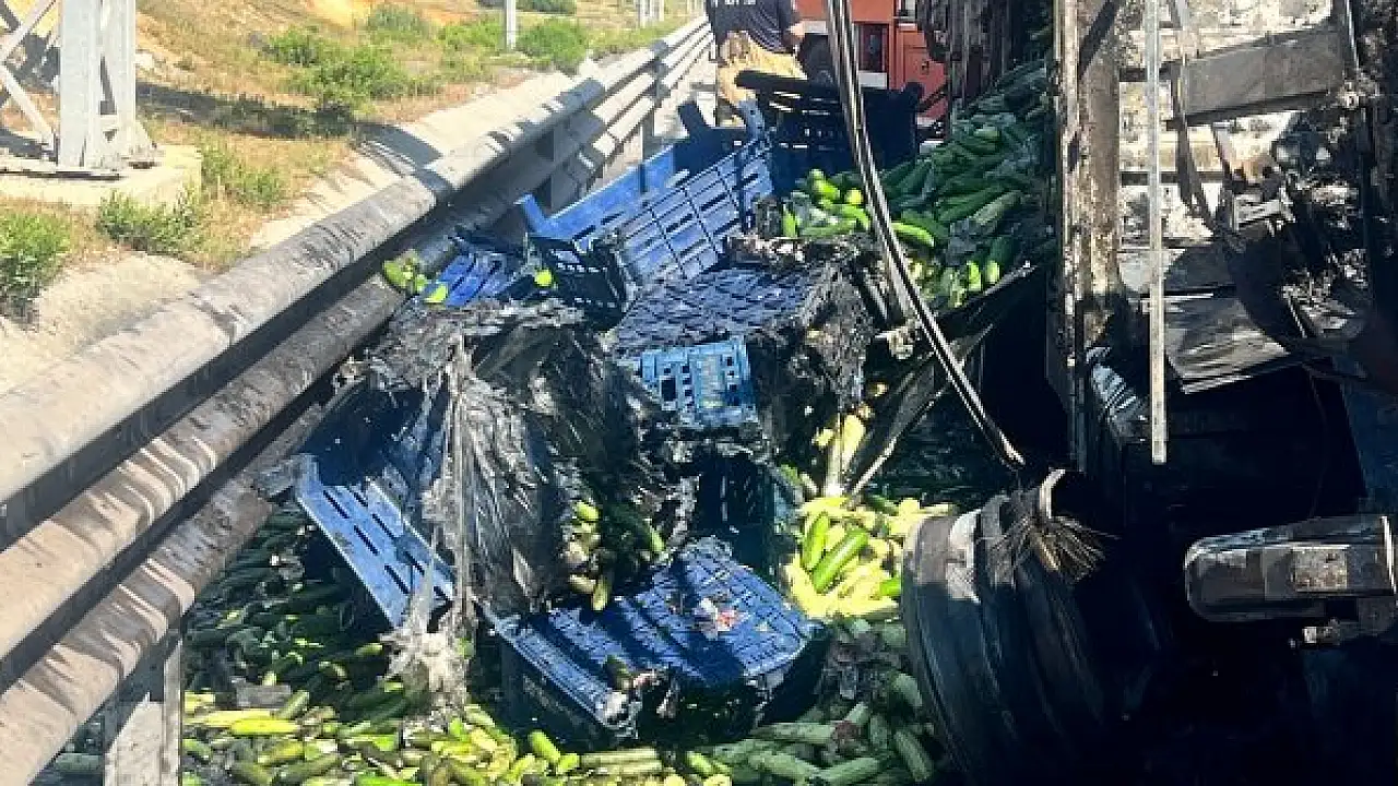 Pendik TEM Otoyolu'nda sebze yüklü kamyon alev alev yandı
