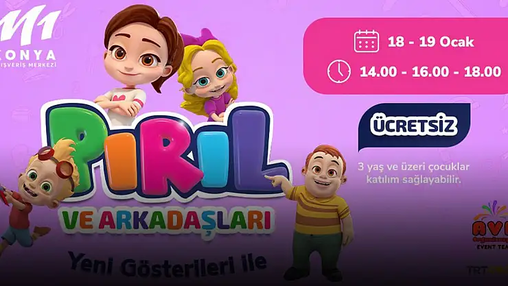 TRT Çocuk'un sevilen kahramanları Pırıl ve arkadaşları, yeni gösterileriyle M1 Konya Alışveriş Merkezi'nde izleyicileriyle buluşuyor. Fiba CP'nin yönetim faaliyetlerini üstlendiği M1 Konya AVM, çocuklara keyifli anlar yaşatacak bu özel etkinlik ile minik misafirlerini ağırlamaya hazırlanıyor.