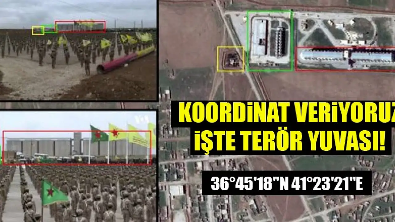 ABD'nin eğittiği 3 bin 500 teröristin bulunduğu eğitim merkezinin koordinatları; (Enlem ve Boylam): 36°45'18"N 41°23'21"E