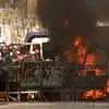 Siirt'in Pervari İlçesi'nde yol yapım şantiyesinde çalışan 2 kamyonu durduran PKK'lılar, araçları ateşe verdi.