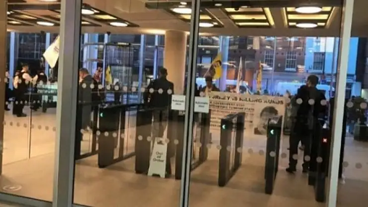 TRT World'ün Gray's Inn Road'daki merkezine gelen yaklaşık 50 terör örgütü yandaşı binanın lobisine girdi. Terör örgütü elebaşı Abdullah Öcalan'ın posterleri ile örgütü simgeleyen bez parçaları taşıyan grup, lobiyi yaklaşık bir saat süreyle işgal etti.