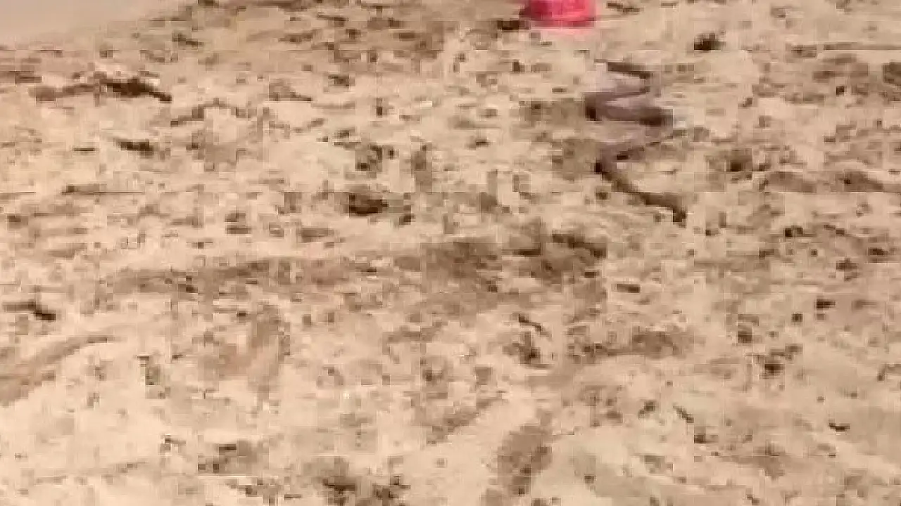 Kocaeli'de vatandaşların serinlemek için denize girdiği esnada plajda görünen yılan paniğe sebep oldu.