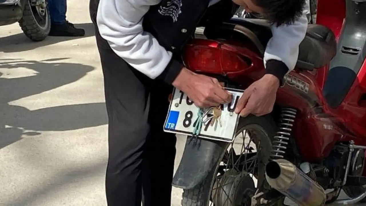 Sürücü, plandaki boyanan kısmı elleriyle kazıyarak, eski haline getirdi. Yapılan incelemeler sonucunda sürücüye yönetmeliğe aykırı şekilde plaka takmaktan 750 TL, ehliyetsiz araç kullanmaktan 3 bin 674 TL, Kask kullanmamaktan 196 TL, ters yönde araç kullanmaktan bin 823 TL cezai işlem uygulandı.