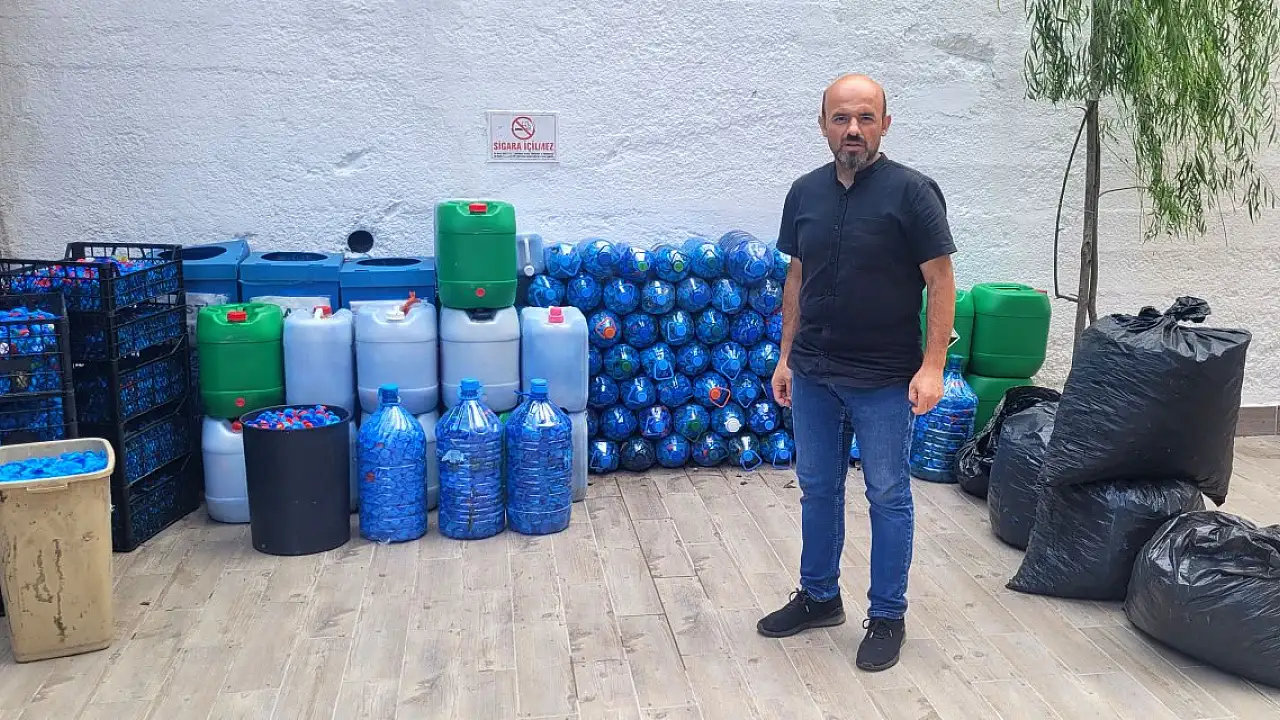 Halk Eğitim Merkezi'nde kantin işleten, halk oyunları antrenörü de olan Muhammet Sağlam, yıllardır plastik şişelerin kapaklarını biriktiriyor. Plastik kapaklar sayesinde 33 engelliyi tekerlekli sandalye sahibi yapan Sağlam, şimdi ise topladığı ve biriktirdiği kapaklardan elde ettiği gelirle kırtasiye malzemeleri alıp, ihtiyaç sahibi öğrencilere dağıtıyor. 1 ton plastik kapaktan 6 bin liralık gelir elde ettiğini söyleyen Sağlam'ın kampanyasına, çevresindekiler de destek veriyor.