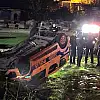 İZMİR'in Çiğli ilçesinde, sürücüsünün kontrolünden çıkan ekip otosunun yol kenarındaki arsaya devrilip, ters durduğu kazada 1'i ağır 3 polis yaralandı.