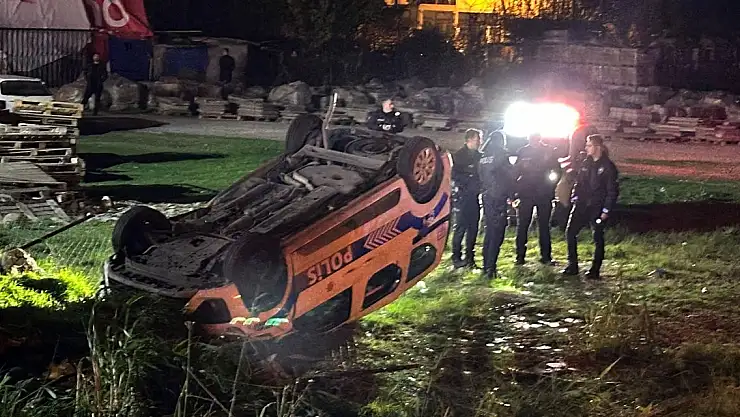 Polis aracı, yol kenarındaki arsaya devrildi 3 yaralı
