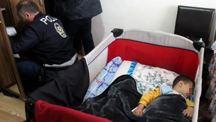 Öte yandan, polis şefkati de İHA kameralarına yansıdı. Arama yapılan evde uyuyan küçük çocuğu gören polis ekipleri, çocuğu uyandırmamak için yoğun çaba sarf etti. Uyanan çocuk ne olduğunu anlamayınca, polis ekipleri çocuğun korkmaması için ‘Sen uyu, biz anneni çağıralım’ diyerek çocuğu teselli etti.