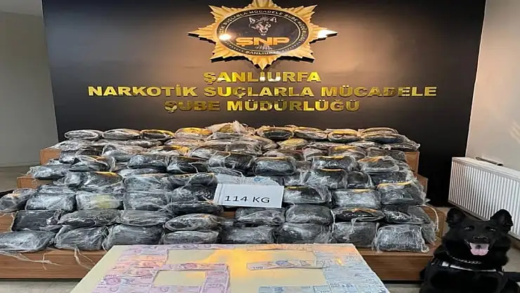 Şanlıurfa'da, polis ekibinin ihbarla durdurduğu kamyonda, kasanın tabanına gizlenen 114 kilo 460 gram skunk ele geçirildi, 2 kişi ise gözaltına alındı.İl Emniyet Müdürlüğü ekipleri, uyuşturucu sevkiyatı yapılacağı ihbarı üzerine harekete geçti. Ekiplerce yapılan çalışma sonucu plakası tespit edilen kamyon, takibe alınarak durduruldu. Narkotik köpeği ile yapılan aramalarda, kamyonun kasasının tabanına gizlenen 114 kilo 460 gram skunk ele geçirildi. Uyuşturucuya el koyan polis, kamyondaki 2 kişiyi gözaltına aldı. İsmi açıklanmayan şüpheliler, sorgulanmak üzere emniyete götürüldü.