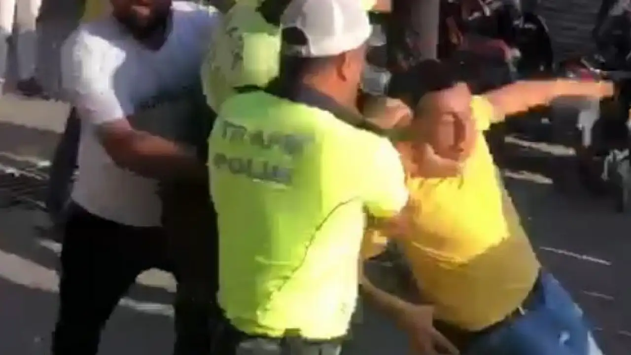 HATAY'ın Antakya ilçesinde polisin bir motosikletliye ceza keserken çıkan tartışmaya esnaf da dahil olunca arbede çıktı.