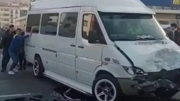 Polis motosikleti ile dolmuş minibüsün çarpışma anı kamerada