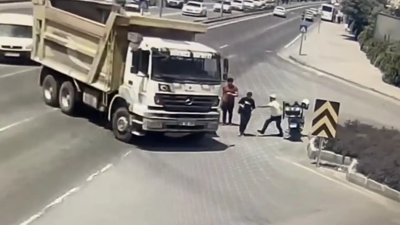 Nevşehir'de Yükseköğretim Kurumları Sınavından (YKS) çıkan öğrenci, yolun karşısına geçmek isterken gelen hafriyat kamyonunu fark etmedi. Durumu fark eden polis ise öğrenciyi kolundan tutarak çekip kurtarırken, Nevşehir Emniyet Müdürlüğü, o anlara ait güvenlik kamerası görüntülerini paylaştı.