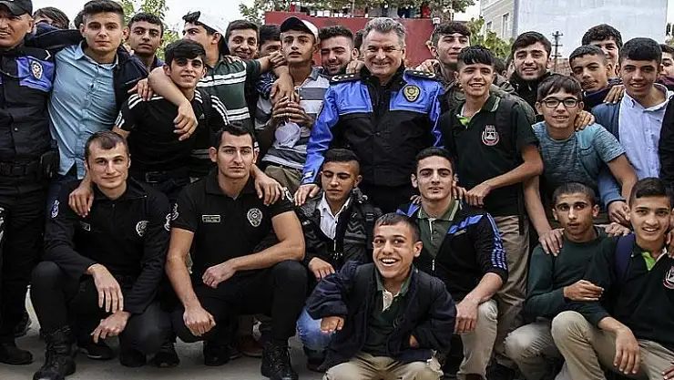 Polis ekipleri, operasyon sonrası Gülbahçesi Mahallesi'ndeki Mahmud Sami Ramazanoğlu Anadolu İmam Hatip Lisesindeki öğrencilerle bir araya geldi.