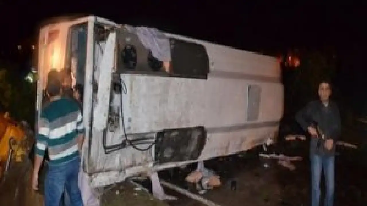 Komser yardımcısı Behçet Yılmaz'ın kullandığı Kayseri Emniyet Müdürlüğü Çevik Kuvvet Şube Müdürlüğüne ait 38 LV 375 plakalı otobüs, Kırşehir-Kayseri karayolu Mucur ilçesi girişinde refüje çarparak devrildi.