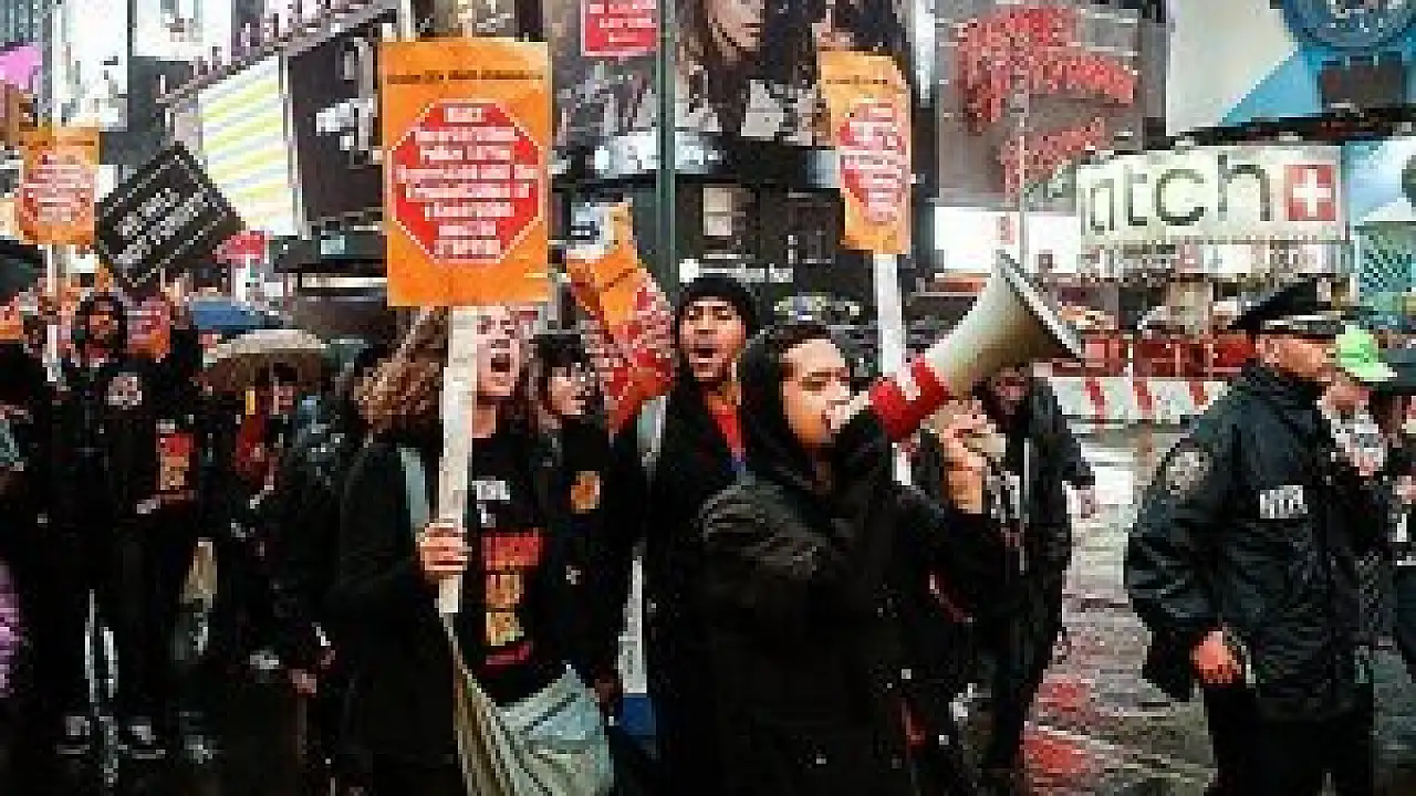 Union Meydanı'nda başlayan gösteri, kentin ünlü Times Meydanı'na doğru sloganlar ve pankartlar eşliğinde yürüyüşle devam etti.