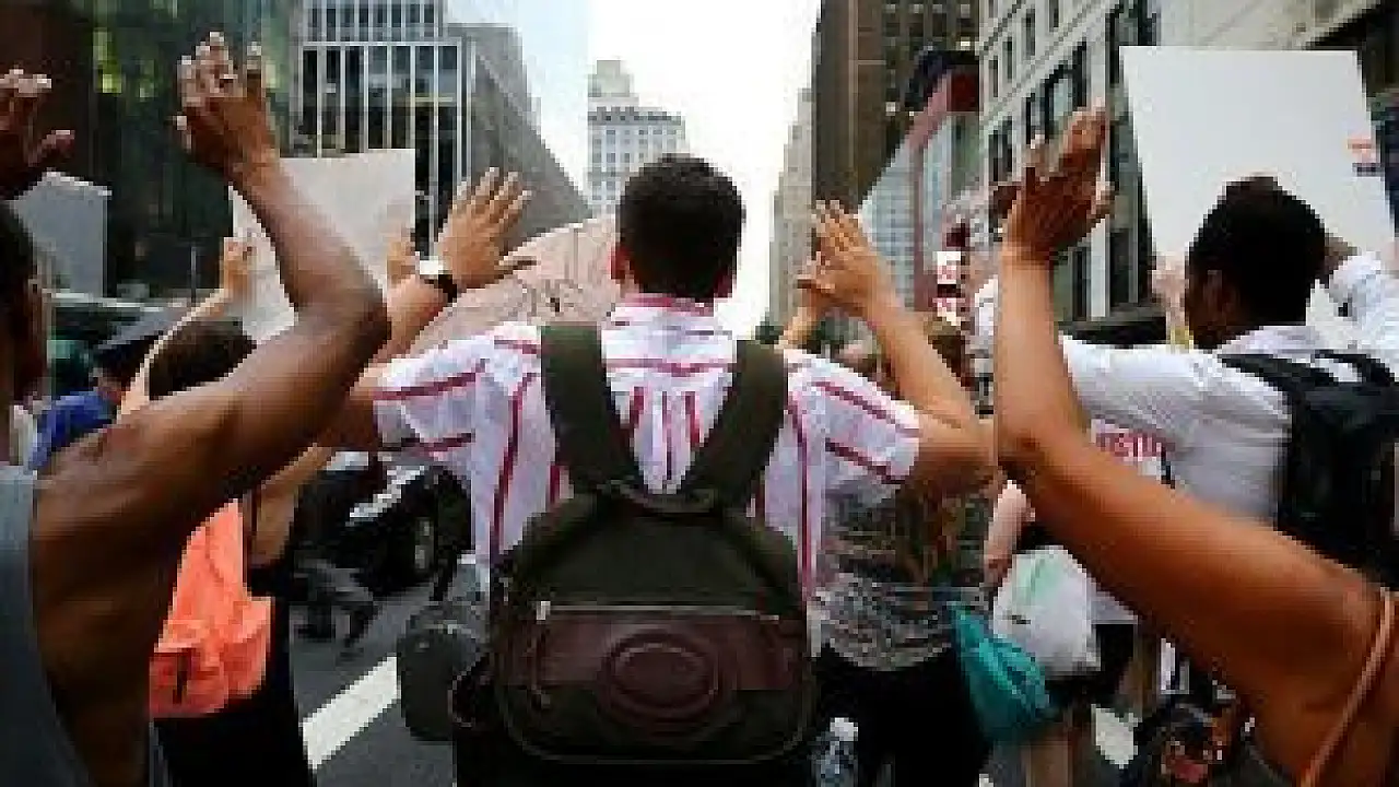 "Siyahilerin hayatı önemlidir", "Irkçı polise hayır", "Adalet yoksa, barış yok" ve "Eller yukarı, ateş etme" sloganlarının öne çıktığı New York kentindeki protestolarda 15 civarında kişi gözaltına alındı.