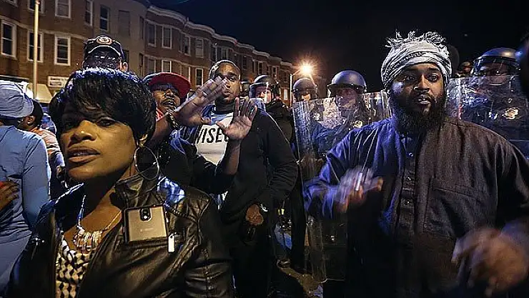 ABD’nin Baltimore kentinde, siyahi genç Freddie Gray’in gözaltındayken hayatını kaybetmesi nedeniyle polis şiddetini protesto için yürüyüş yapılıyor.