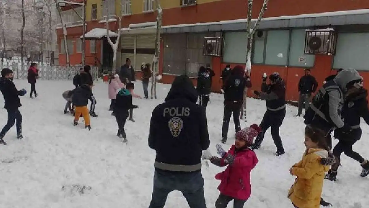 Diyarbakır'da, yoğun kar yağışı sonrası okulların tatil edilmesiyle birlikte çocuklar sokağa çıkarak karın keyfini çıkardı. Polis ve çocuklar kar topu oynarken kimi vatandaşlar ise halay çekti.