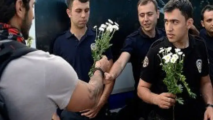 Taksim Gezi Parkı protestosu için toplanan bazı gruplar, polise çiçek verirken, polisler de eylemcilere çiçek dağıttı.