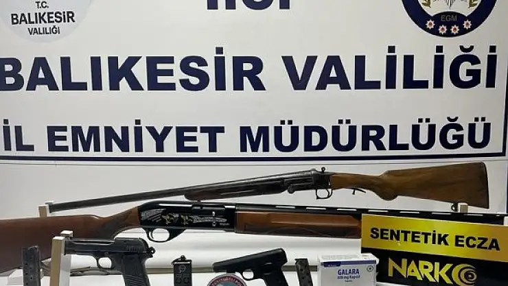 Balıkesir İl Jandarma Komutanlığı ekipleri genel güvenliği ve asayişi sağlamak amacıyla Altıeylül, Ayvalık, Balya, Bandırma, Bigadiç, Burhaniye, Dursunbey, Edremit, Gönen, Havran, İvrindi, Karesi, Kepsut, Marmara ve Sındırgı ilçelerinde yapılan operasyon ve yapılan yol aramalarında; çeşitli suçlardan aranan 34 şahıs gözaltın alınırken, 2 tabanca ve 1 adet av tüfeği ele geçirdi.