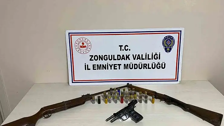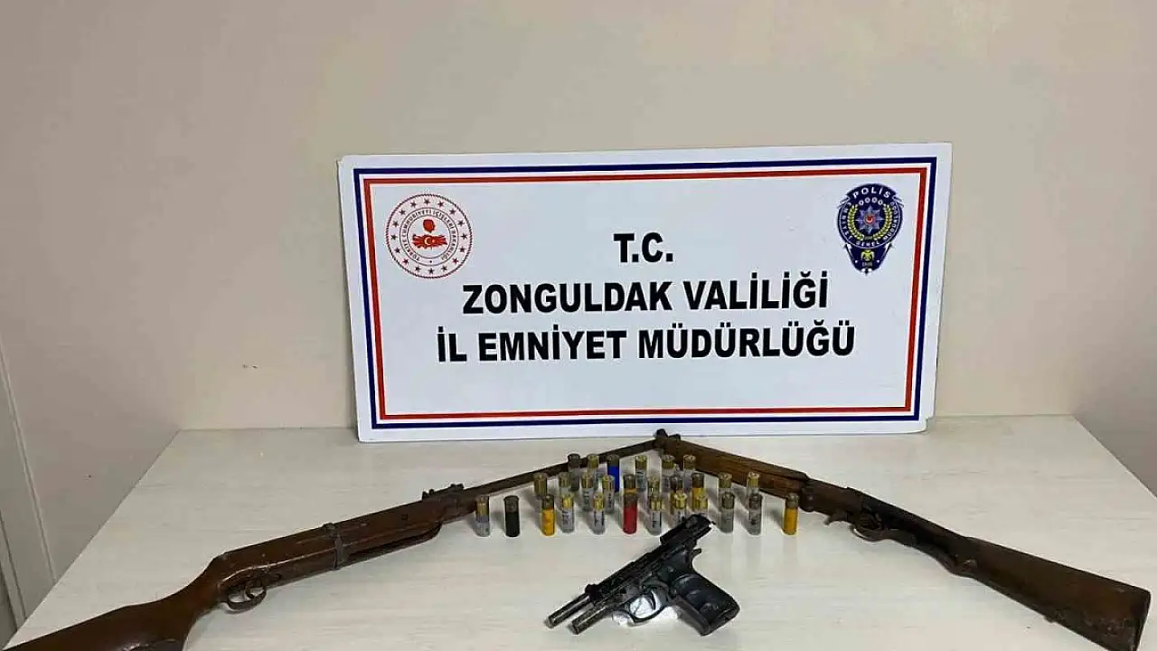 Zonguldak İl Emniyet Müdürlüğüne bağlı Kaçakçılık ve Organize Suçlarla Mücadele Şube Müdürlüğü ekipleri, 6136 Sayılı Kanun'a muhalefet suçundan E.G.'nin ikametine baskın yaptı. Evde yapılan aramada 1 adet namlusu değiştirilmiş kurusıkı tabanca, 1 adet av tüfeği, 1 adet havalı tüfek ve 28 adet av fişeği ele geçirildi. Şüpheli E.G hakkında 6136 Sayılı Kanun'a muhalefet suçundan işlem yapıldı.