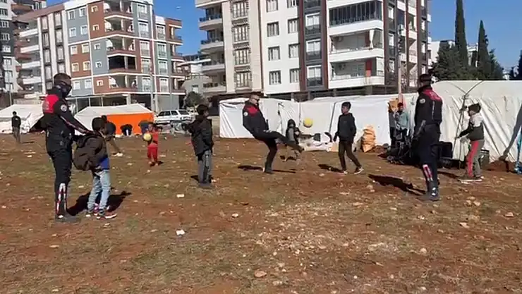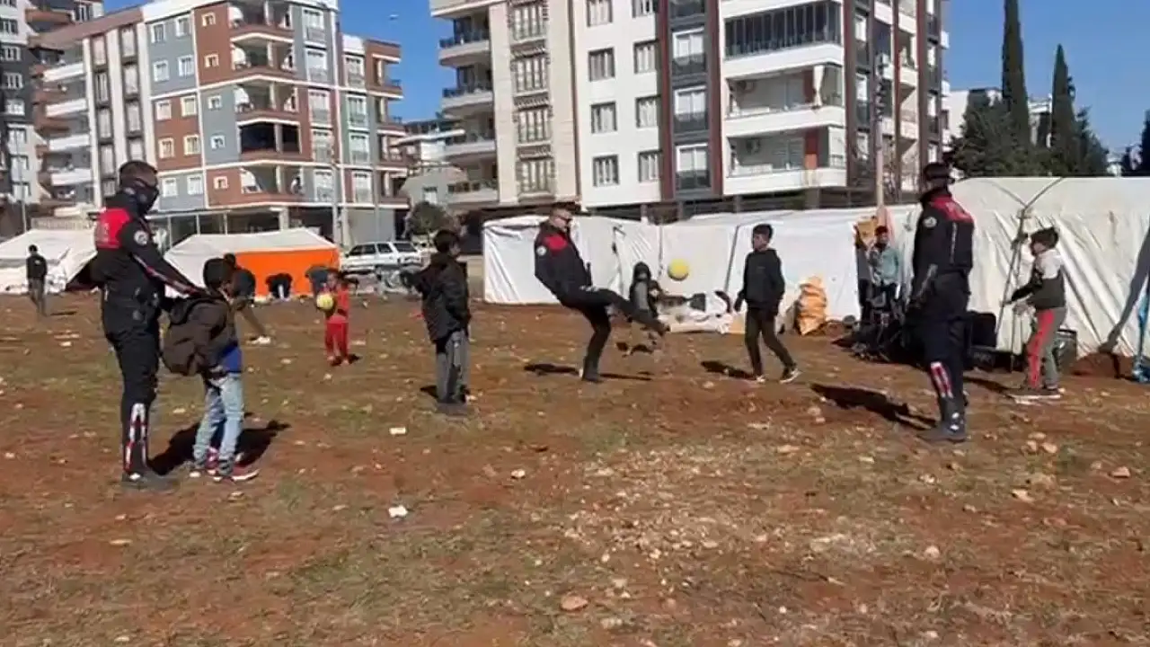 Kahramanmaraş merkezli depremlerin vurduğu Adıyaman'da görevlendirilen Diyarbakır Emniyet Müdürlüğü Asayiş Şube Müdürlüğü'ne bağlı yunus polisler, nöbet değişimi sonrası çadır kente gitti. Burada depremzede çocuklara oyuncak veren polisler, aynı zamanda top oynadı. Polisler ile çocukların top oynadığı anlar, cep telefonu kamerasına yansıdı.