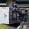 İstanbul Havalimanı'nda görevli polisleri taşıyan servis minibüsü, yağmurun da etkisiyle kayganlaşan yolda bariyerlere çarparak devrildi.