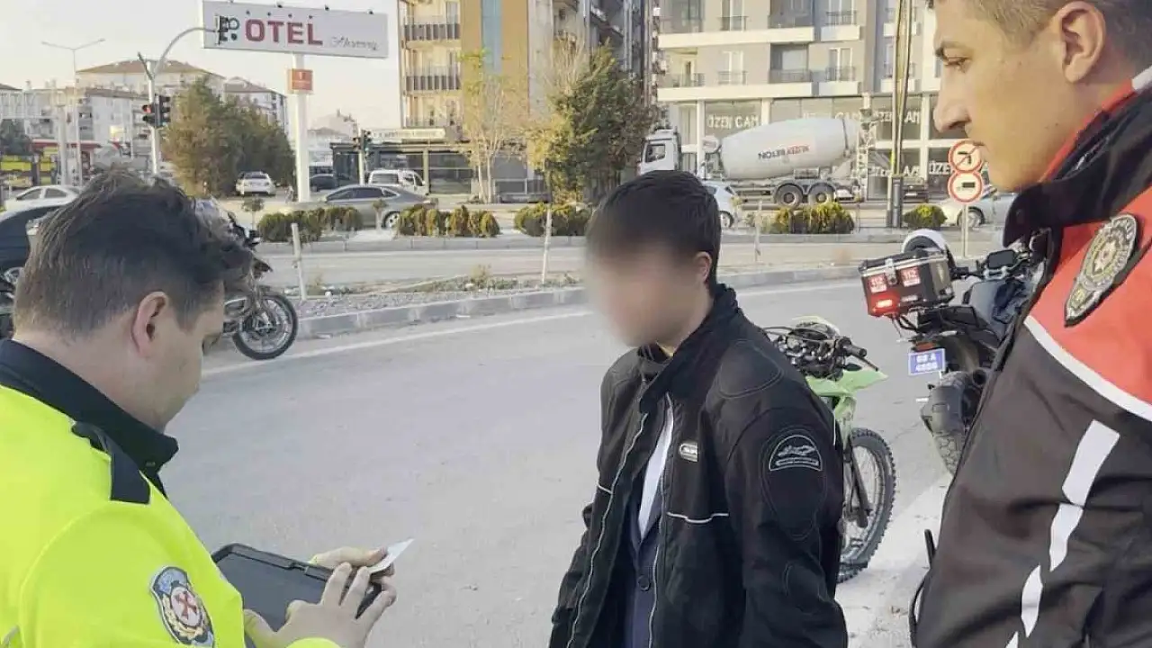 Aksaray'da polisin "dur" ihtarına uymayan motosiklet sürücüsü, yaşanan kovalamaca sonucu yakalanıdı. 15 yaşındaki sürücüye 45 bin 746 lira para cezası kesildi.