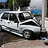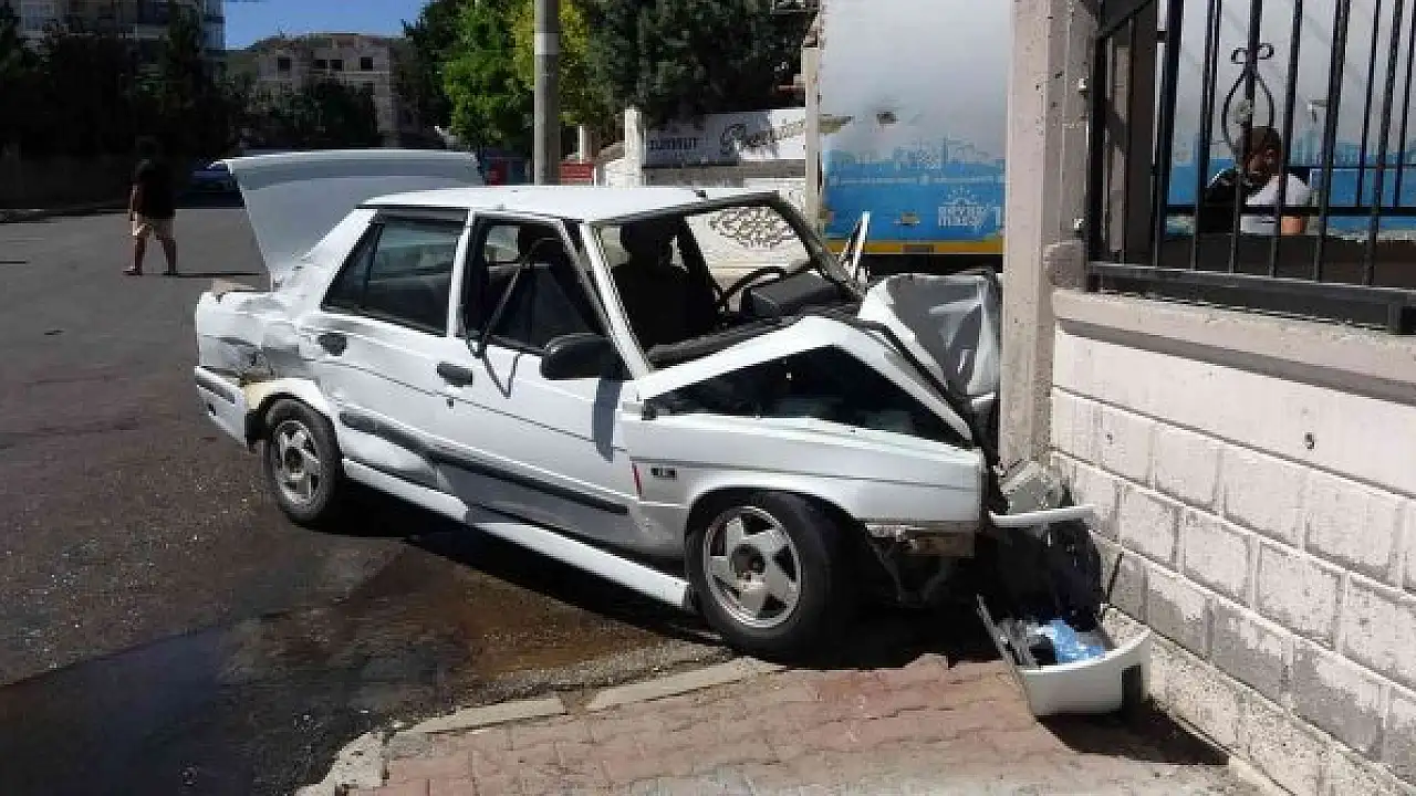 Polisten kaçan ehliyetsiz sürücü önce araca sonra bahçe duvarına çarptı
