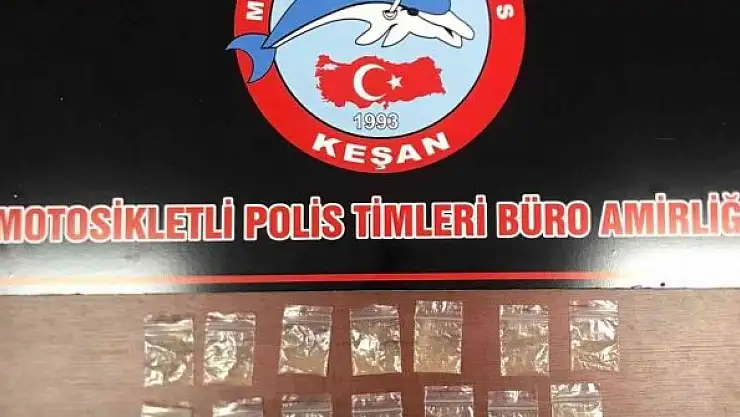Edirne'nin Keşan ilçesinde seyir halinde uygulama yaparken şüpheli bir kişinin kaçtığını gören polis ekipleri, yakaladıkları şahsın üzerinde 23 paket uyuşturucu ele geçirdi.