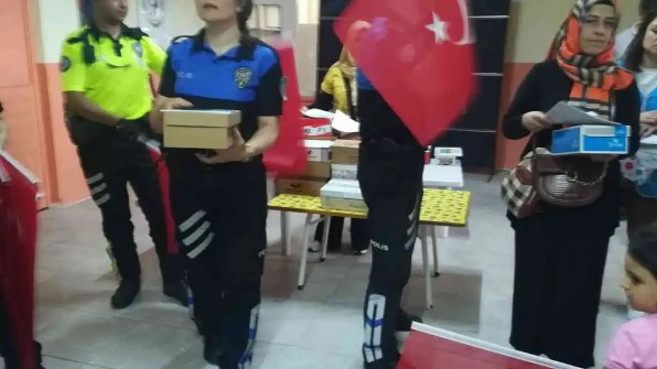 Polisten öğrencilere eğitim ve ayakkabı yardımı