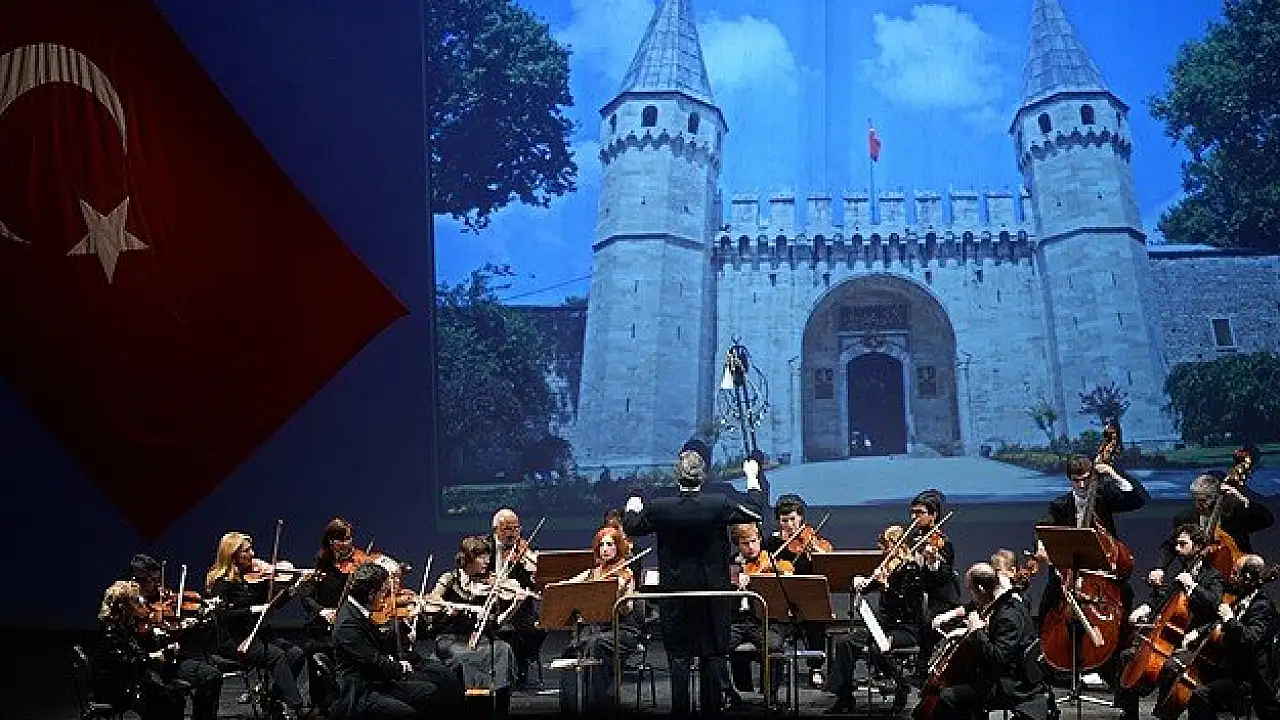Sahne arkasında kurulan dev perdeden Osmanlı dönemindeki klasik Avrupa müziği etkinliklerine ilişkin görseller gösterilirken, direktör Emre Aracı eserlerin arasındaOsmanlı İmparatorluğu döneminde bu müziğin gelişimine ilişkin bilgiler verdi.