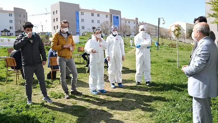 İl Sağlık Müdürü Prof. Dr. Mehmet Koç, Suudi Arabistan'da karantina altında tutulduktan sonra Konya'ya getirilen ve Selçuk Üniversitesi Kampüsü'ndeki Kredi Yurtlar Kurumu'na bağlı Şems-i Tebrizi yurdunda karantinaya alınan vatandaşlarımıza hizmet sunan sağlık çalışanları ile bir araya geldi.