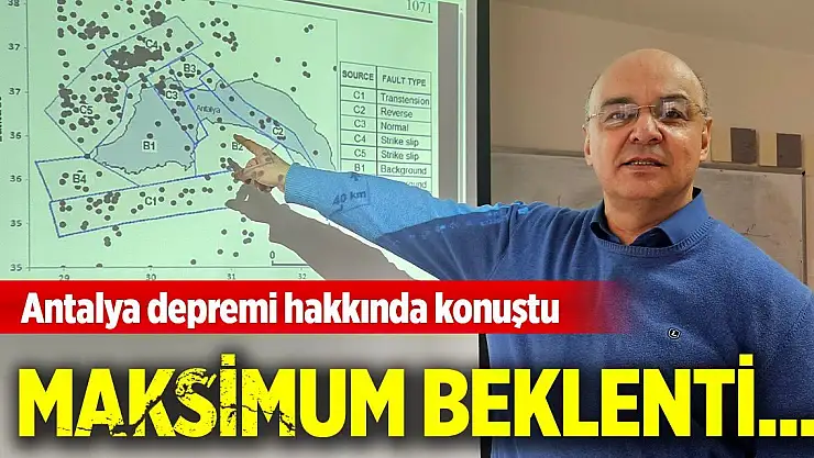 "Dalma batma zonunda büyük depremler bekliyoruz. Oraya analiz ettiğimizde 7 büyüklüğüne kadar büyüklükler çıktı. Bu deprem de tekrar edeyim 5.2 ile sınırlı kalıyor. Biliyorsunuz 5.2 yüzeye yakın olduğu için tam fay üzerinde hasar yapabilir, küçük hasarlar yapabilir. Ancak Antalya şehir merkezini düşünürseniz epey bir mesafe var. O yüzden Antalya şehir merkezi için korkulacak bir durum yok. Antalya civarında asıl büyük deprem üretebilecek fayımız dalma batma zonu fayıdır. Bu Kıbrıs'ın Baf açıklarında başlar. Baf'ta da çok büyük depremler üretir. Sonra yine denizaltından, Finike denizaltı dağlarının güneyinden başlar dalmaya. Kuzeye doğru kama şeklinde Antalya'nın altına doğru dalar. Antalya'nın il merkezinin hizasına geldiğinde derinlik 90 kilometreyi bulur. O yüzden bu fay çok büyük deprem üretir. Ama biz hissetmiyoruz. Çünkü Antalya'nın hizasına geldiğinde, iz düşümüne geldiği zaman 90 kilometre aşağıda oluyor. Açıklarda olduğu zaman da yine 90 kilometre uzağımızda oluyor. Büyük deprem ama biz az hissediyoruz."