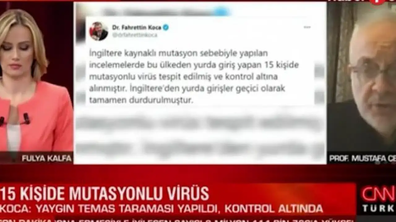 Gelen son dakika haberine göre; Sağlık Bakanı Fahrettin Koca, İngiltere'den son dönemde Türkiye'ye giriş yapan ve PCR test sonucu 'pozitif' çıkan kişilere yapılan geriye dönük taramalar neticesinde 15 kişide yeni mutasyon ile uyumlu virüs yükü tespit edildiğini açıklamıştı. Prof. Mustafa Çetiner bu gelişmeyle ilgili olarak CNN TÜRK canlı yayınına bağlanarak açıklamalarda bulundu.