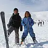 Profesyonel kayakçılara kafa tutan minik kardeşler