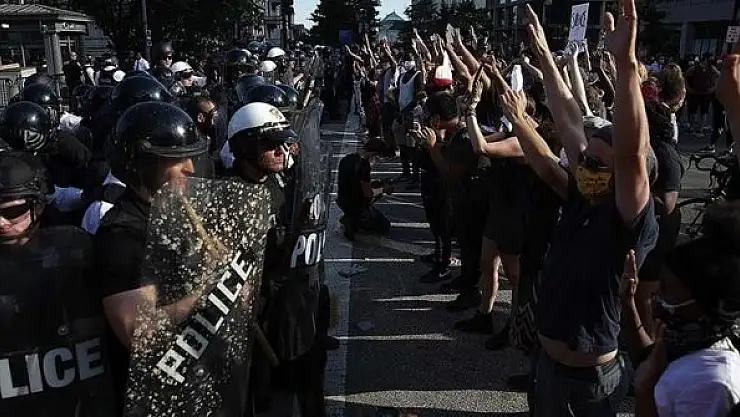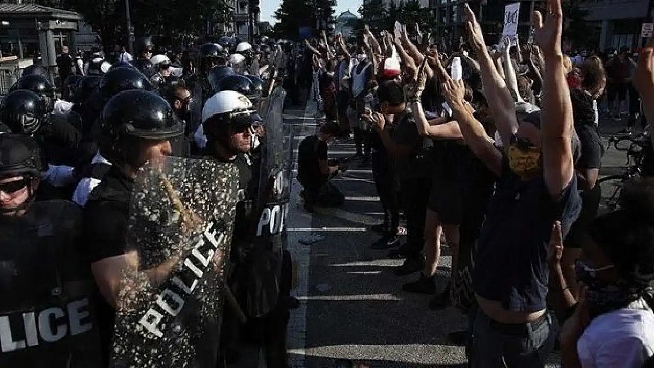 Di Washington DC, Lafayette Park yang berlokasi di seberang Gedung Putih menjadi titik utama protes pada Minggu, di mana polisi bentrok dengan demonstran dan kebakaran serta pelanggaran terhadap barikade keamanan terjadi.