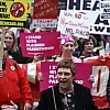 Etkinlikte, "Biz yüzde 99'uz", "Yerle bir etme, düzelt", "Trump'a, Ku Klux Klan'a ve ırkçı ABD'ye hayır", "Sağlık hizmeti ayrıcalık değil, bir insan hakkıdır" yazılı dövizler dikkati çekti. Katılımcılar, "Sağlık hizmeti insan hakkıdır", "Donald Trump'ın gitmesi lazım" ve "Nefret de yok korku da göçmenler hoş geldiniz buraya" sloganları attı.
