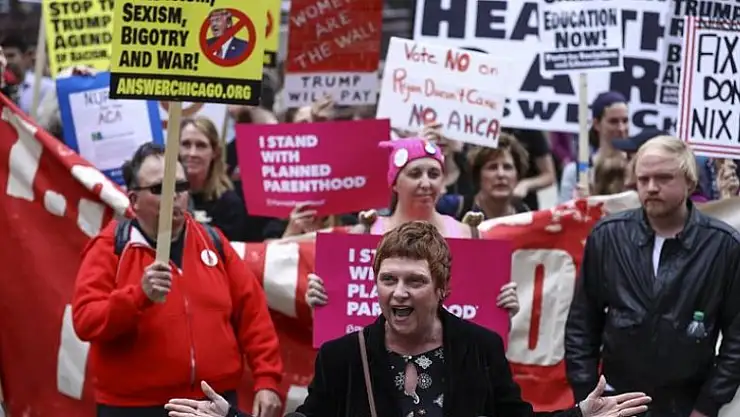 Chicago'da yeni sağlık sigortası tasarısını protesto etmek için planlanan etkinlik, Başkan Trump'ın son dakikada geri atması üzerine kutlama şeklinde gerçekleştirildi.