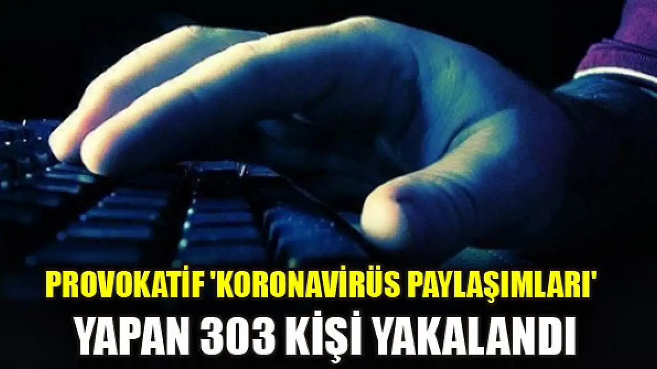 İçişleri Bakanlığı, sosyal medyada provokatif koronavirüs paylaşımı yaptığı belirlenen 765 şüpheli şahıstan 303'ünün yakalandığını bildirdi.