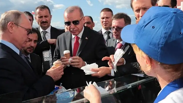 Cumhurbaşkanı Erdoğan, Rusya Devlet Başkanı Putin'in daveti üzerine Rusya'ya günü birlik ziyaret gerçekleştirmiş, Moskova'daki fuarı ziyaret eden iki lider birlikte dondurma yemişti. Bu sırada hesabı kimin ödeyeceğini soran Erdoğan'a Putin "Siz misafirsiniz tabii ki biz ödeyeceğiz." ifadelerini kullanmıştı.