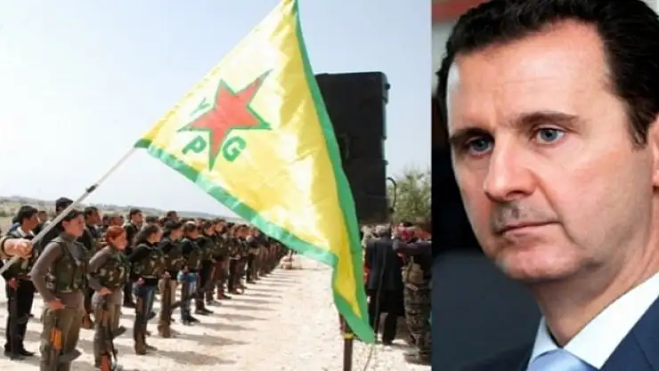 Türk Silahlı Kuvvetleri'nin başlattığı Zeytin Dalı Harekatı'ndan sonra herkesten yardım isteyen terör örgütü YPG yandaşları, son olarak Esad'ın posterlerini taşımaya başlamıştı. Bazı noktalara da rejim bayrakları asılmıştı.