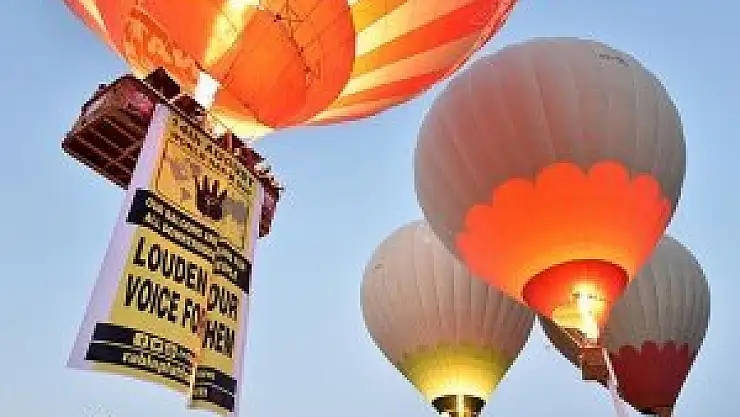 Nevşehir'in Göreme beldesinden sabah 06.00'da İngilizce, Türkçe, ve Arapça "14 Ağustos Dünya Rabia Günü. Tüm mazlumlar için balonlarımızı yükseltiyoruz. Siz de sesinizi yükseltin" yazılı pankartların asılı olduğu balonlar içindeki turistlerle birlikte havalandı.