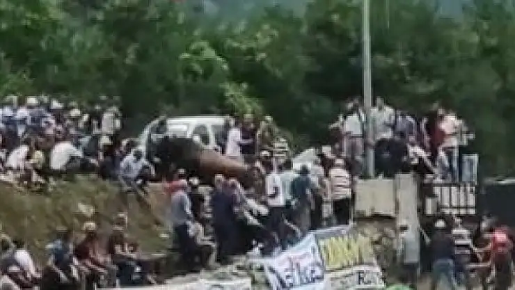 Artvin'de geleneksel olarak düzenlenen boğa güreşlerinde, rakibinden kaçan boğa tribünde bulunan seyircinin arasına daldı. Korku dolu anların yaşandığı olayda şans eseri kimse yara almadı.