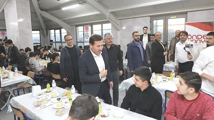 Karatay’da Ramazan ayının bereketi vatandaşlarla birlikte açılan iftar sofraları, beraber kılınan teravih namazlarıyla yaşanıyor. Karatay Belediye Başkanı Hasan Kılca bu kapsamda Hacıveyiszade Yurdunda Konya Anadolu İmam Hatip Lisesi öğrencileri ve öğretmenleriyle iftarda buluştu. İftar öncesinde masaları tek tek gezen Hasan Kılca, gençlerle sohbet ederek, Ramazan ayının birlik ve beraberlik ruhuna vurgu yaptı.
