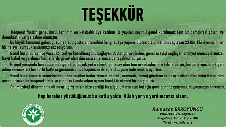 Ramazan Erkoyuncu teşekkür mesajı