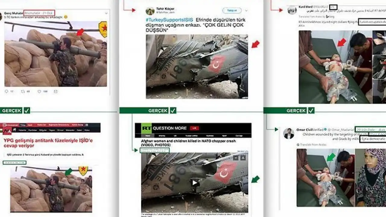 Depuis le lancement samedi par l’Armée turque de l’opération Rameau d’olivier contre les organisations terroristes PYD/PKK ( et ses branches KCK/YPG) et Daech dans la région d’Afrin dans le nord-ouest de la Syrie, les milieux proches du PKK partagent des photos et des informations fausses sur les réseaux sociaux.