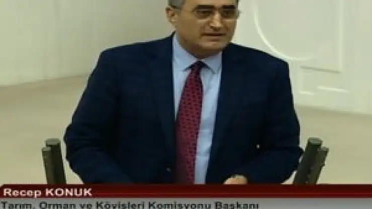 AK Parti Karaman Milletvekili ve Tarım, Orman ve Köyişleri Komisyonu Başkanı Recep Konuk, Gıda, Tarım ve Hayvancılık Bakanlığının yanı sıra Milli Savunma ve Bilim, Sanayi ve Teknoloji Bakanlıkları ile 7 kurum ve kuruluşun bütçesinin görüşüldüğü 2016 Yılı Bütçe Kanunu Tasarısı yedinci turunda TBMM Genel Kurulu’na hitaben bir konuşma yaptı.