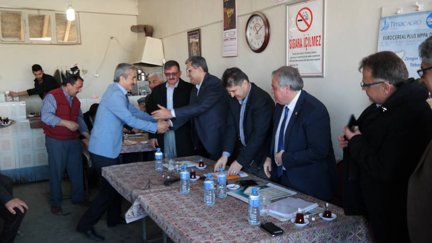 Anayasa değişikliğine yönelik halk oylaması çalışmalarını sürdüren AK Parti Karaman Milletvekili, TBMM Tarım, Orman ve Köyişleri Komisyonu Başkanı Recep Konuk, Ayrancı ilçesinde düzenlenen programda vatandaşlarla bir araya geldi. Programda Recep Konuk’a, AK Parti Karaman Milletvekili Recep Şeker, AK Parti Karaman İl Başkanı Nazmi Ünlü, İl Genel Meclis Başkanı Celalettin Güngörer’in yanı sıra MHP’li Ayrancı Belediye Başkanı Yüksel Büyükkarcı’da eşlik etti. Konuşmasına Ayrancı İlçesine yapılan yatırımlar ve devam eden projeleri anlatarak başlayan Konuk, iktidar partisi olarak vatandaşa sunulan hizmetlerde herhangi bir parti ayrımı yapmadan çalıştıklarını ifade ederek diğer belediyelere ne destek verildiyse Belediye Başkanı farklı partiden olmasına rağmen Ayrancı Belediye’sine de aynı desteği verdiklerini belirtti. Recep Konuk, “Anayasa değişikliğinin gerek Meclise sunulmasında gerekse de Genel Kurul görüşmelerinde ortak hareket ettiğimiz ve önemli katkıları olan MHP ile Türkiye Büyük Millet Meclisi çatısı altında nasıl birlikte çalışmışsak, bugün bu birlikteliği halk oylaması çalışmaları kapsamında sahada MHP’li Belediye Başkanımızla birlikte sürdürüyoruz. İşte bizim yapmak istediğimiz tam da budur. Hangi görüşten olursa olsun ülkemiz adına birliktelik oluşturmak. Yeni Anayasa ile ülkemiz her alanda atılım yapacak. Yeter ki bu birlikteliği tüm bireyler arasında oluşturalım ve ülkemizin geleceği için bozmayalım. Görüyorum ki Ayrancı İlçemiz halk oylamasına ilişkin kararını çoktan vermiş. ‘Evet’ ile Ayrancı geleceğine sahip çıkıyor” dedi.