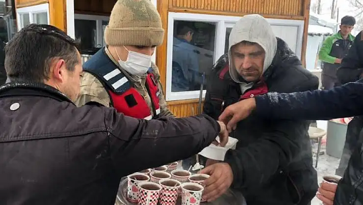 Erzincan'ın Refahiye ilçesinde kar ve tipi dolayısıyla yolda kalan vatandaşlara, jandarma ekiplerince sıcak çorba ve çay ikramında bulunuldu.